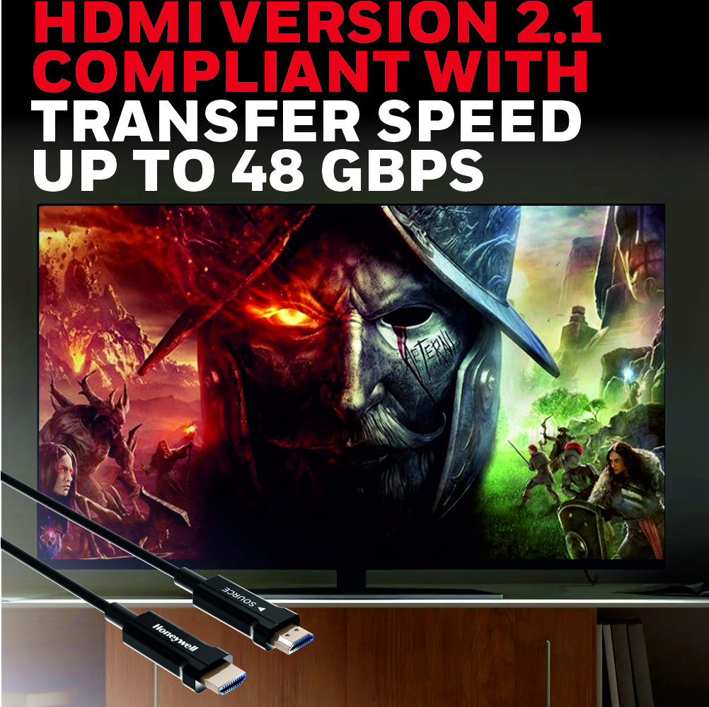 The Honeywell HDMI 50 Meter AOC (Active Optical Cable) 2.1 Compliant is a high-quality cable designed to transmit HDMI signals over long distances with uncompromised quality. Here’s a detailed product description: